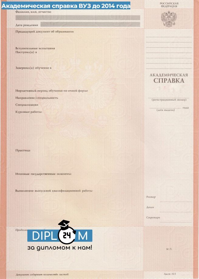 • Комплектация: заполненный бланк академической справки с печатями и подписями