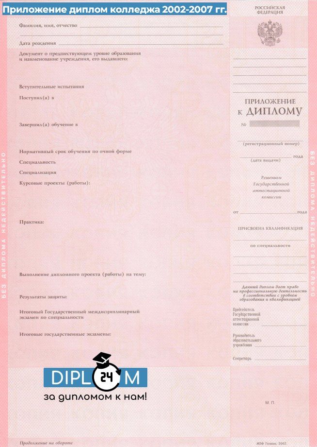 Диплом колледжа 2002-2007 гг.