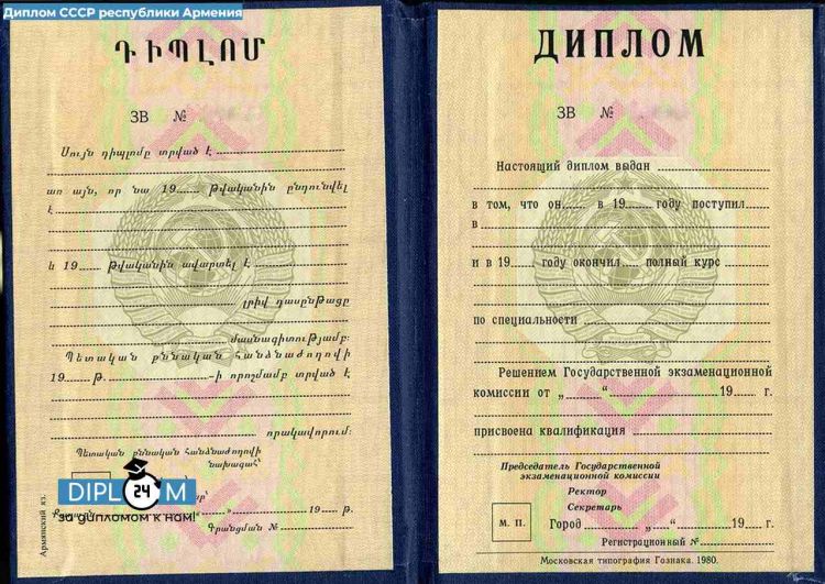 - Диплом СССР о высшем образовании Республики Армения