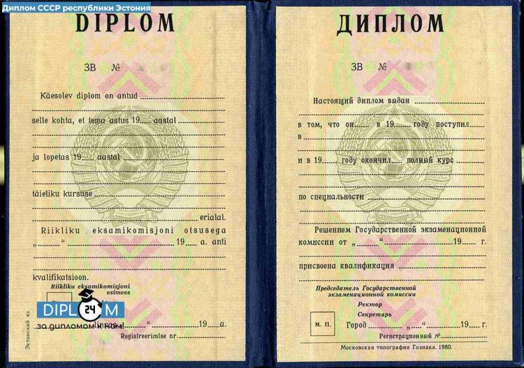 - Диплом СССР о высшем образовании Республики Эстония
