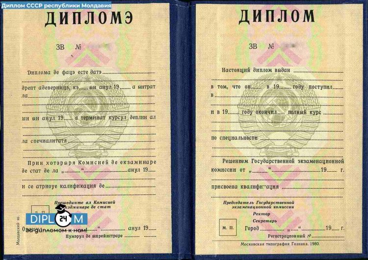 - Диплом СССР о высшем образовании Республики Молдавия