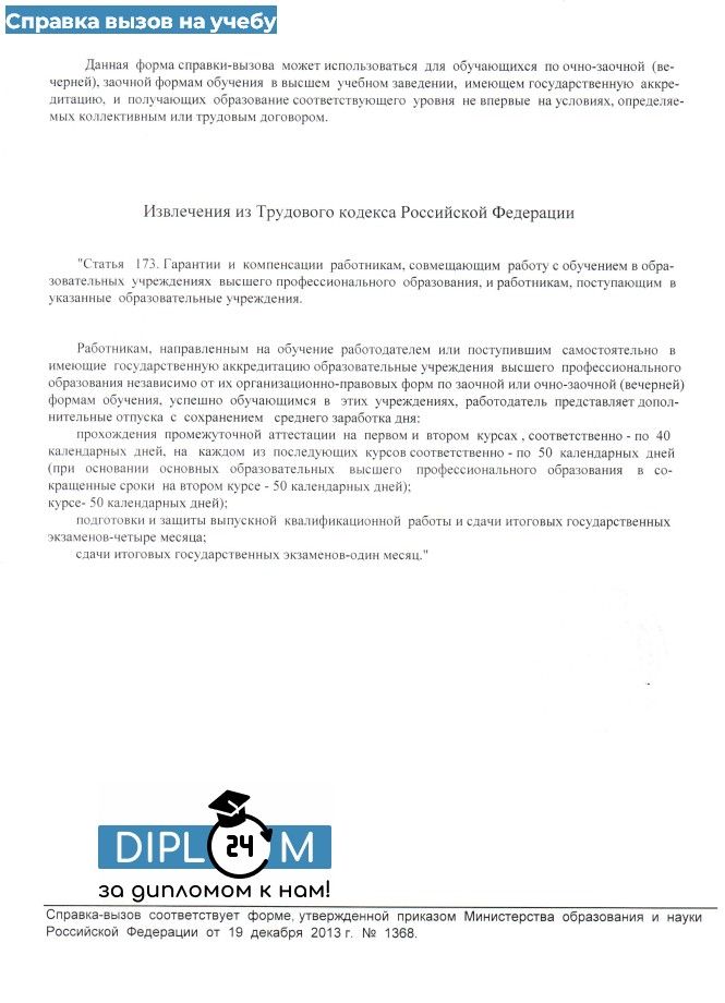 • Комплектация: заполненный бланк справки вызов на учебу с печатями и подписями