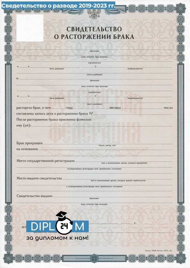 • Комплектация: заполненный бланк свидетельства о разводе с печатями и подписями